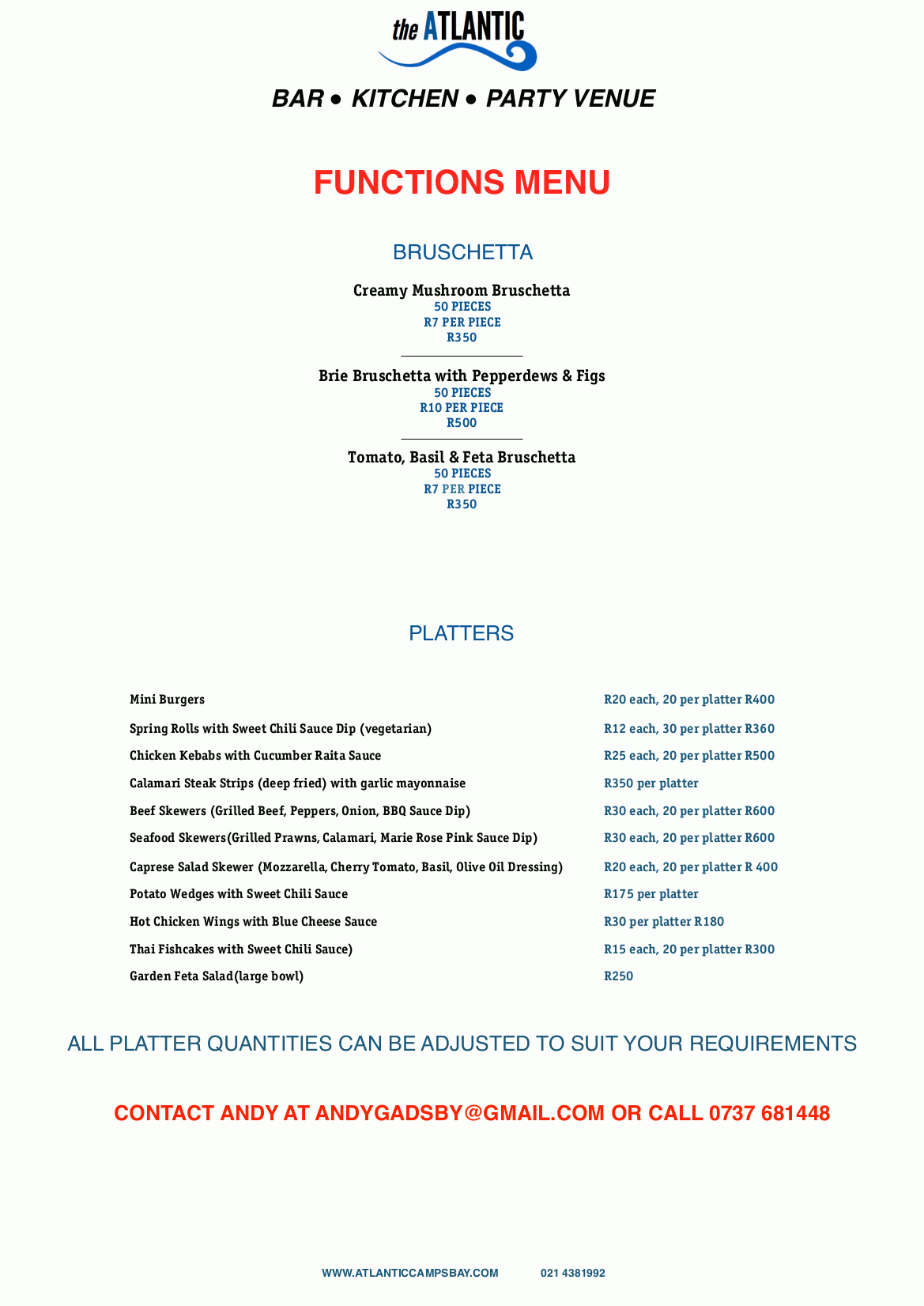 Situated in the heart of Camps Bay the Atlantic with spectacular ocean views. We can accommodate parties from 25 to 150 people.